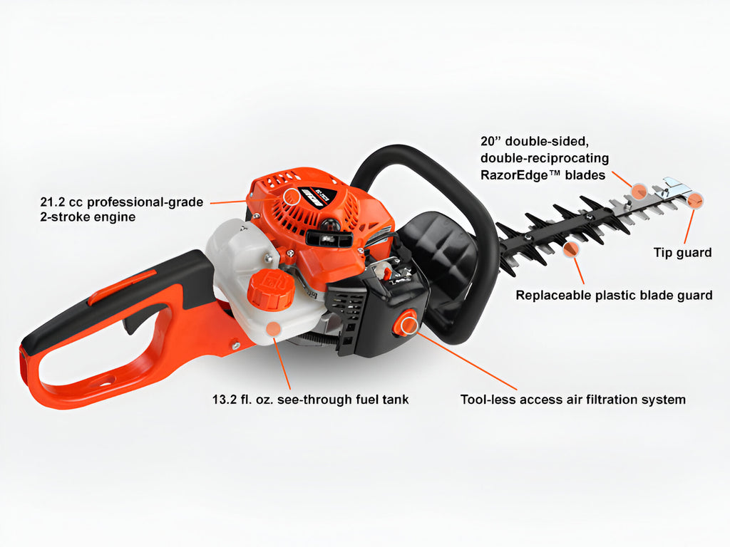 Mighty manicures without added effort. The HC-2020 hedge trimmer is built to professional standards but perfectly accessible for homeowners maintaining their landscaping. With a balanced, lightweight construction and 20-in. double-sided blades, it adds beauty without adding user fatigue.