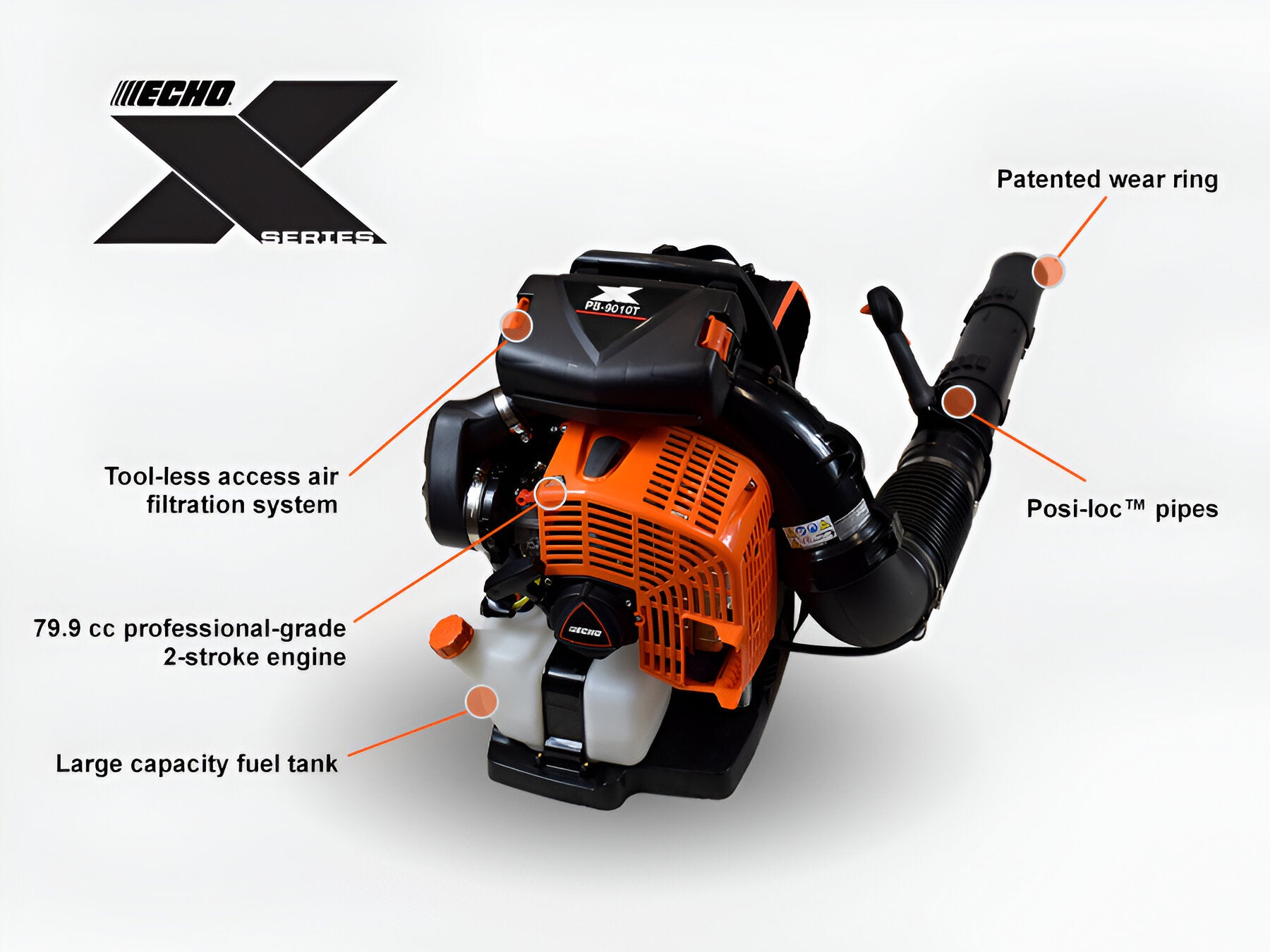 Built for pro-level performance, the PB-9010 is the most powerful blower in the ECHO lineup—moving more debris, faster, with less effort.
